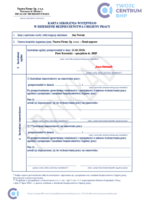 oraz podpisaniem karty szkolenia wstępnego własnoręcznym podpisem.